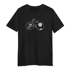 Astronaut Bicycle T-Shirt – Surreal Space & Moon Abstract Design Graphic Tee