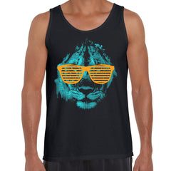 Cool Lion Halftone Animal-Sunglasses Black Tank Top