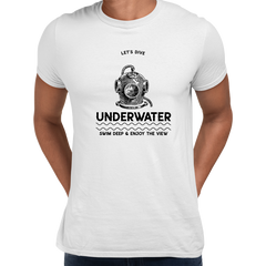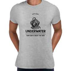 Dive into the world of scuba diving with our Modern Underwater Dive T-shirt. This tee features a deep water diver swimmer on the front, and an underwater view of fish below. Ideal for budget conscious dive lovers, this shirt is perfect for relaxing at home or out in the sun.