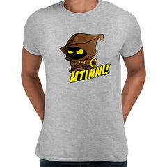 Who are these Jawas, and why did they take our droids. These questions will be answered in due time. For now, we'll just be glad they left us with these amazing t-shirts. Available in both red and blue, our Utinni! Jawas t-shirt is sure to make you the friendliest person in the galaxy.